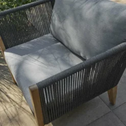 - Aluminium frame, Rope zit en rugleuning en teak houten poten