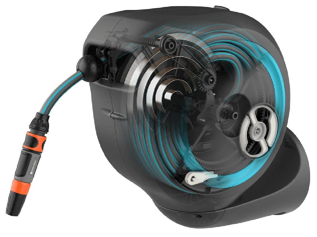 Tuinieren is handiger en gemakkelijker dan ooit met de wandslangenbox RollUp S. Deze helpt uw tuin netjes en opgeruimd te houden en voorkomt hinderlijk struikelgevaar als gevolg van een rondslingerende slang. De praktische slangopslag is eenvoudig aan de muur van uw huis te bevestigen en wordt met een flexibele aansluitslang aangesloten op de kraan. Dankzij de stevige muurbeugel kan de slangenbox meer dan 180 graden worden gedraaid, zodat u elke hoek van uw tuin moeiteloos kunt bereiken. Voor direct gebruik kunt u de tuinslang eenvoudig verlengen tot een lengte van maximaal 15 meter. De tuinslang wordt automatisch in heel korte intervallen vergrendeld zodra u stopt, wat betekent dat de slang eenvoudig en gemakkelijk te hanteren is. Door lichtjes aan het uiteinde van de slang te trekken, wordt de vergrendeling ontgrendeld en een ingebouwde stalen veer met innovatieve RollControl-technologie zorgt voor soepel en gecontroleerd oprollen. De RollControl beschermt de slangenbox en de omgeving tegen schade als gevolg van het te snel inrollen. Om knikken of knopen in de slang te voorkomen, heeft de box een geïntegreerde slanggeleider. Dankzij de slang- en kraanaansluitingen van het Original GARDENA System kunt u eenvoudig en flexibel een verlengstuk of ander compatibel GARDENA element op de slang aansluiten. U hebt altijd uw GARDENA slangopzetstukken bij de hand. Ze kunnen onder de muurbeugel worden bevestigd en daar worden opgeborgen om ruimte te besparen. De GARDENA wandslangenbox is UV- en vorstbestendig en kan het hele jaar door probleemloos aan de muur van het huis blijven bevestigd. Het hoogwaardige materiaal biedt u een lange levensduur en gebruiksgemak zonder onderhoud. Bovendien kan de box niet worden gestolen dankzij de antidiefstalbeveiliging en kan de box alleen door u van de muur worden verwijderd. Samen met de wandslangenbox ontvangt u een muurbeugel, een flexibele aansluitslang, alle benodigde Original GARDENA System en montageonderdelen en een mondstuk met twee verschillende sproeiopties. Dit hoogwaardige product wordt geleverd met een garantie van vijf jaar van GARDENA. Bewatering die altijd gebruiksklaar is , dankzij de GARDENA wandslangenbox RollUp S.