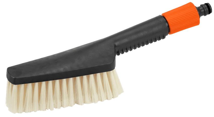 Met de kleine uitvoering van de GARDENA handwasborstel die op de watertoevoer kan worden aangesloten, in combinatie met een Original GARDENA System-aansluiting kunt u kwetsbare oppervlakken gemakkelijk reinigen, bijvoorbeeld tuinmeubilair, garagedeuren of voertuigen. Door de platte, smalle vorm komt u op alle smalle plekken en hoeken. De watertoevoer is traploos instelbaar en kan worden vergrendeld. Op die manier kan de hoeveelheid water worden aangepast aan de werkzaamheden. U kunt het reinigingseffect vergroten door GARDENA shampoostaafjes toe te voegen. Gelakte en kunststof oppervlakken kunnen zo voorzichtig worden gereinigd.