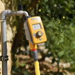 De slangwagen van 60m wordt compleet geleverd met 30m slang van 12,5 mm en alle koppelstukken die u nodig hebt om te besproeien.