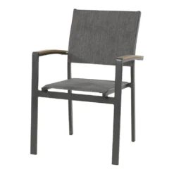 De Arezzo stapelbare stoel heeft een heerlijke comfortabele zit. Door de textilene zitting en rugleuning word als het ware je lichaam gevolgd waardoor dit voor een heerlijk zit zorgt. Wat ook super handig is, is dat je deze stoelen kan opstapelen. De stoel heeft een aluminium frame met op de armleggers een plankje polywood.